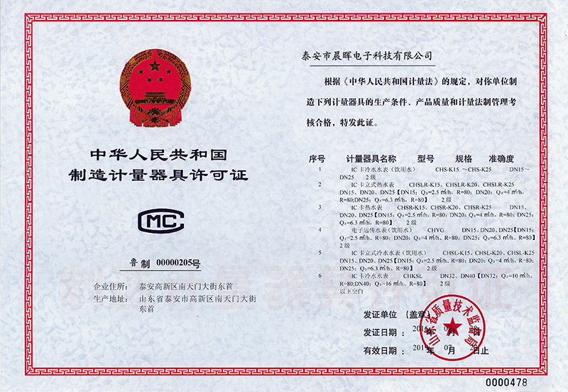 制造计量用具允许证