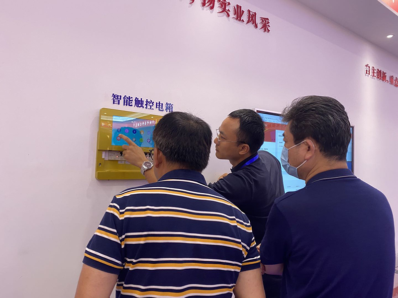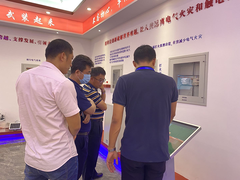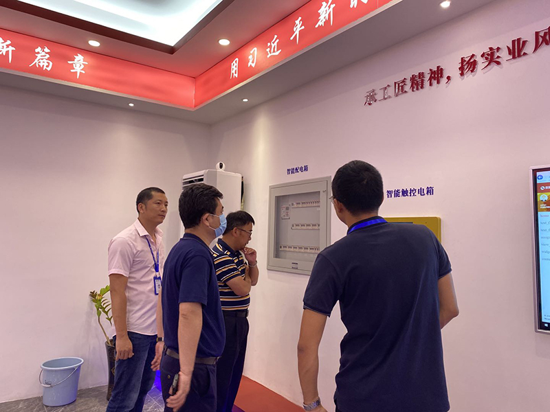在我司向导的向导下,,,,黄总和孔工一行人旅行了我司高端立异的智能化样品展示厅及高效的生产作业车间,,,,并对我司智能化用电系统及用电清静方面体现高度肯定、认可。。。。。。。